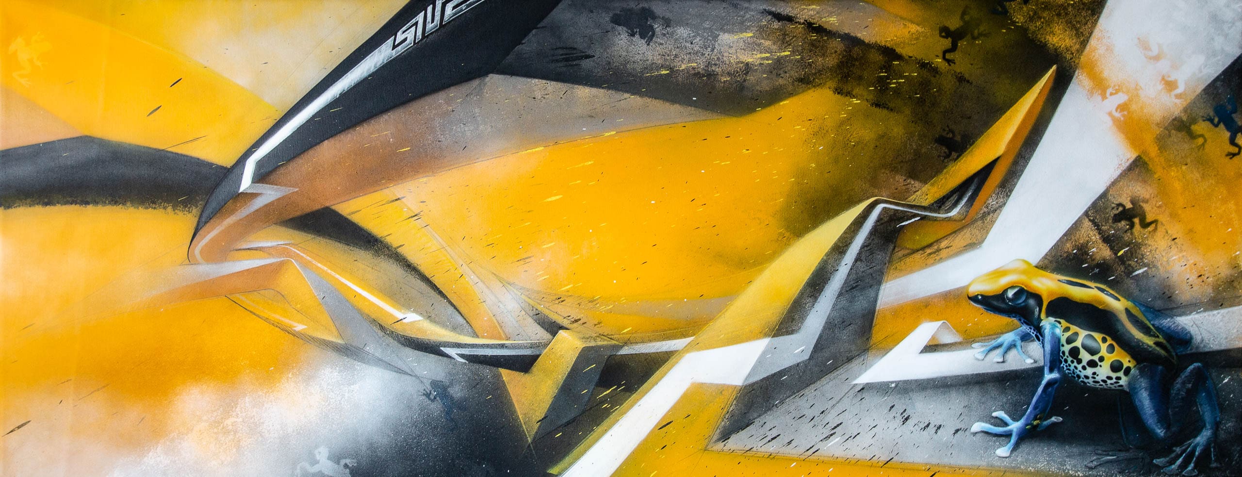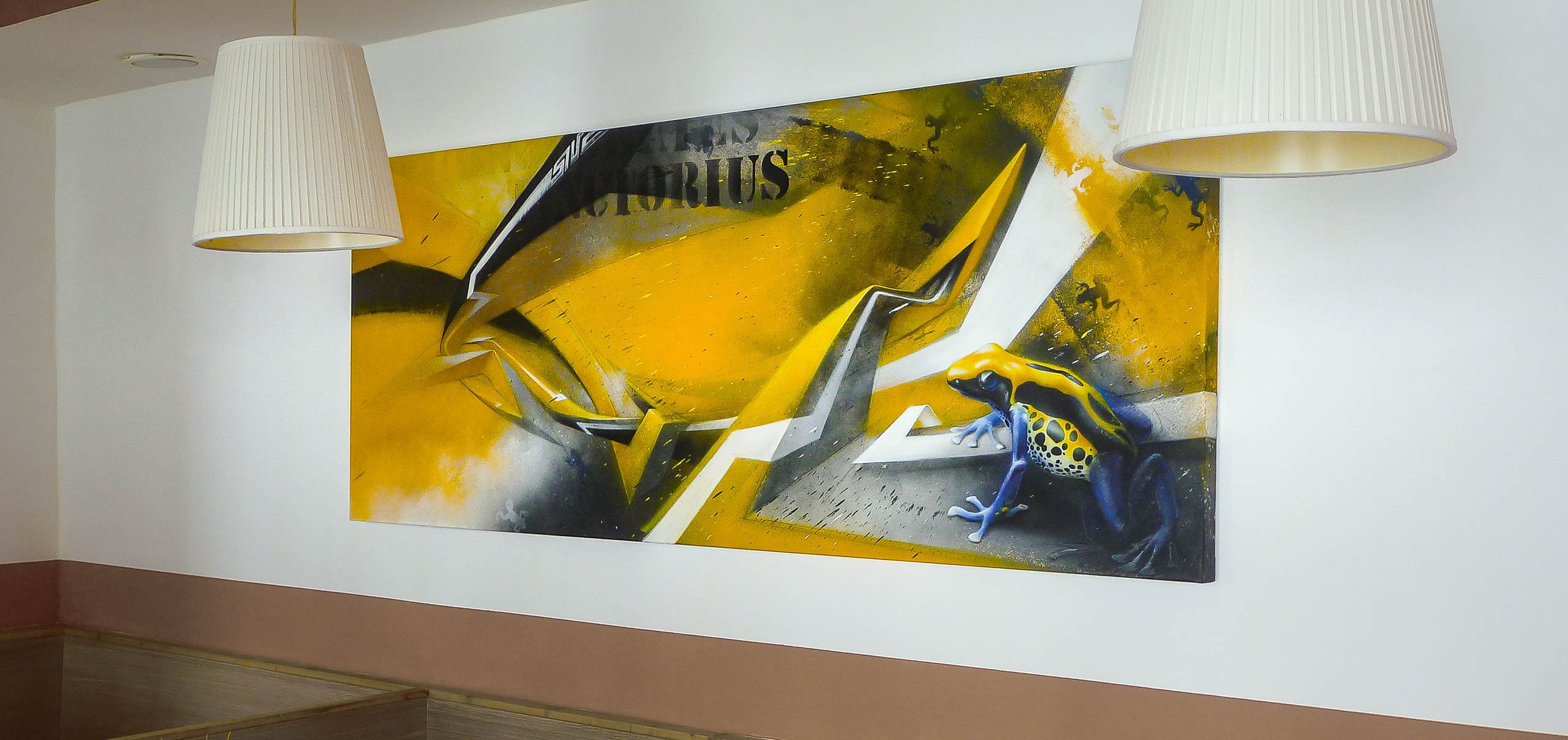 Technik: Sprühlack-Mischtechnik, Datum: 2018, Format: 90x230cm bespannter Keilrahmen