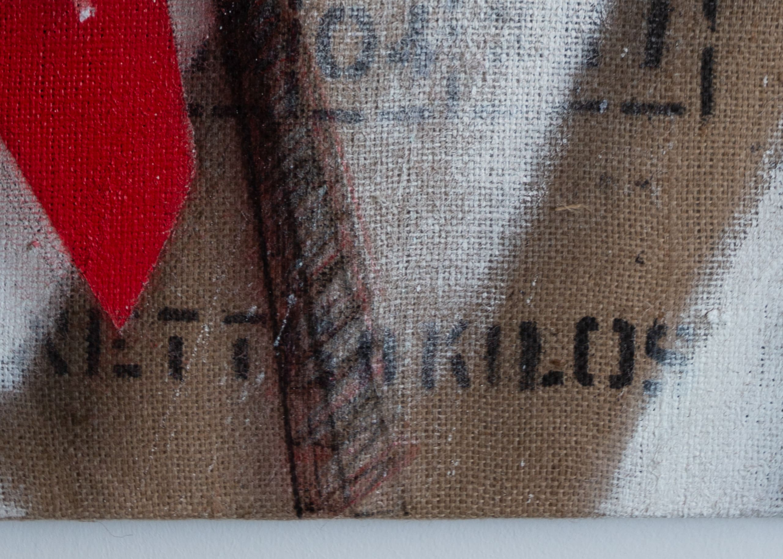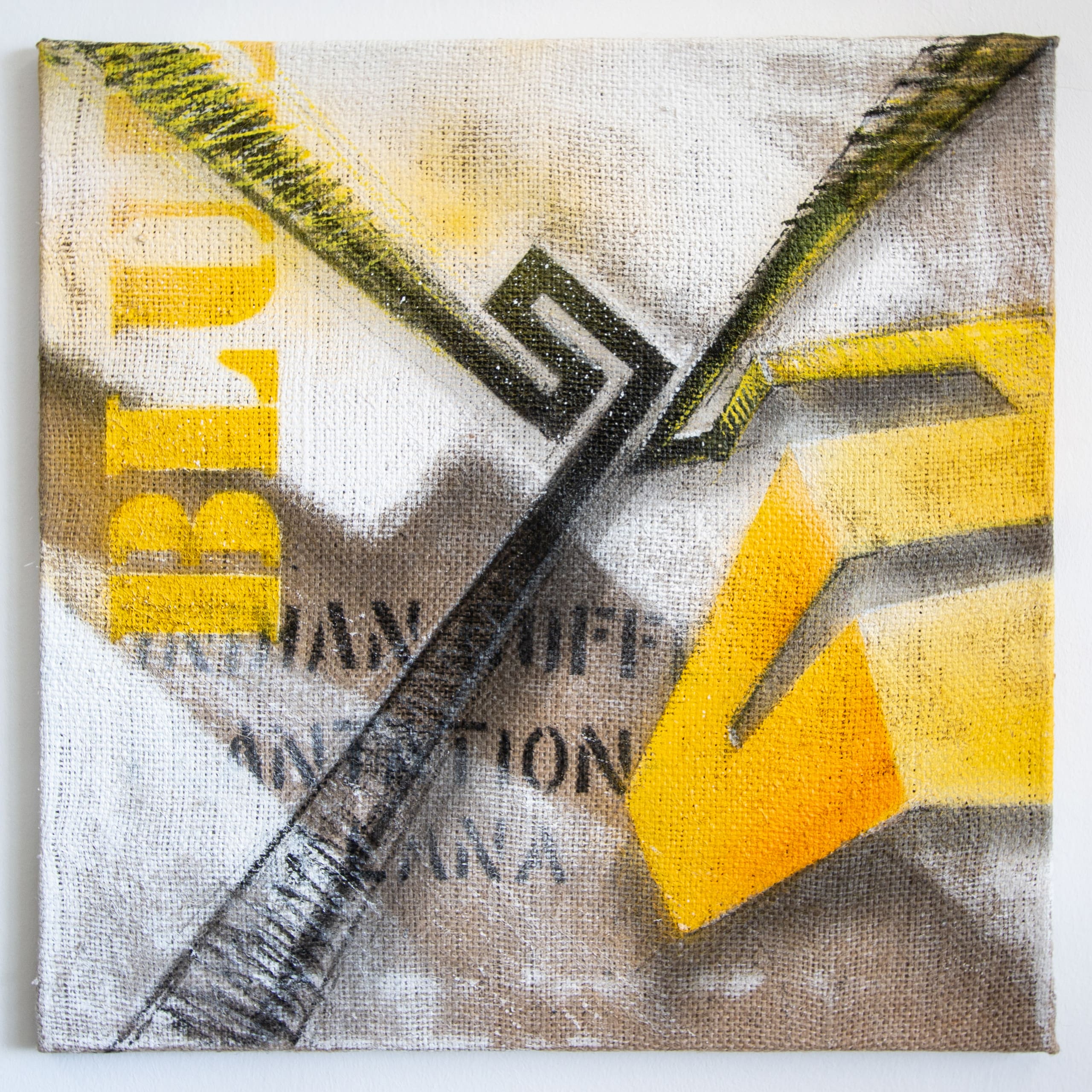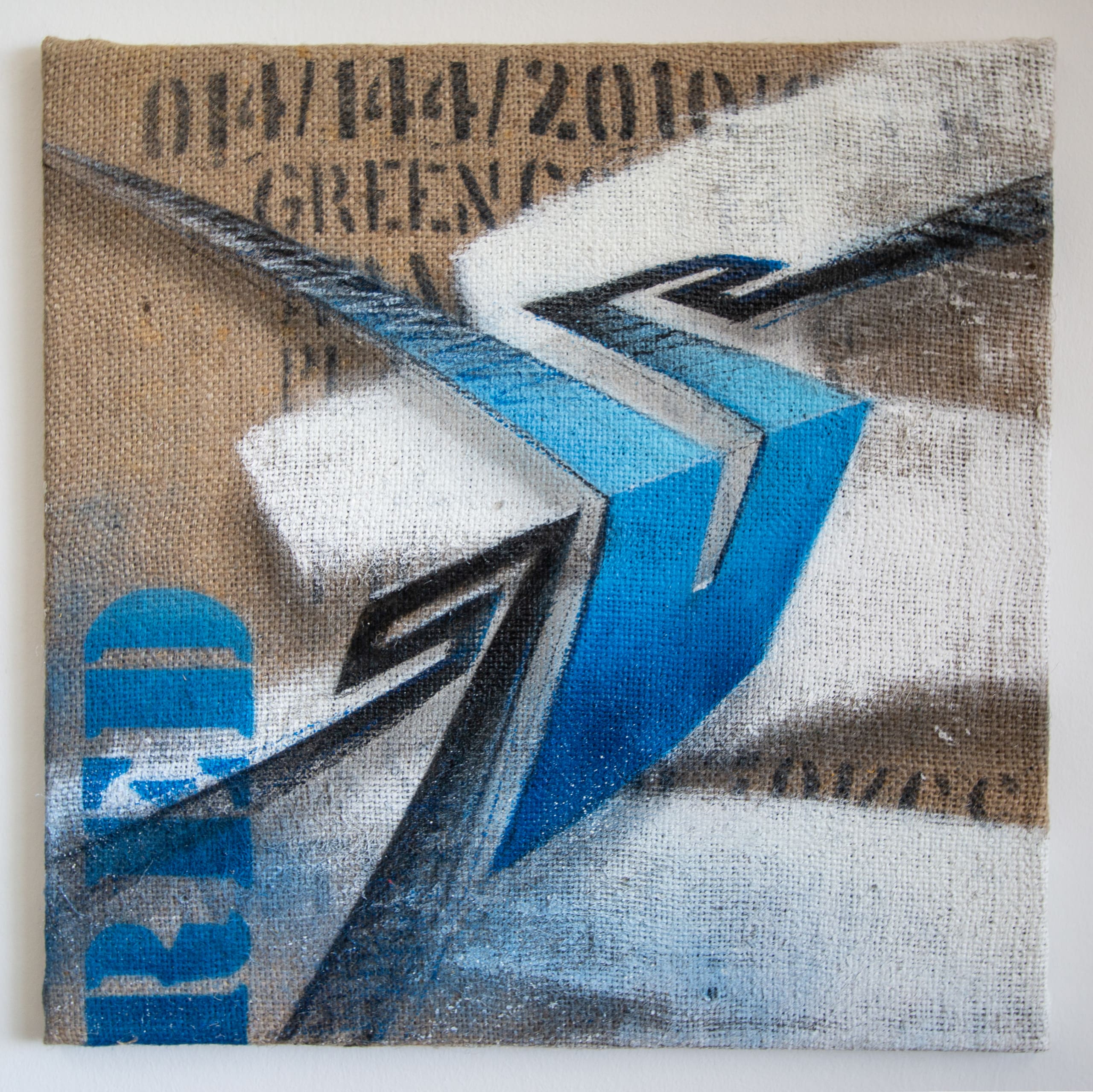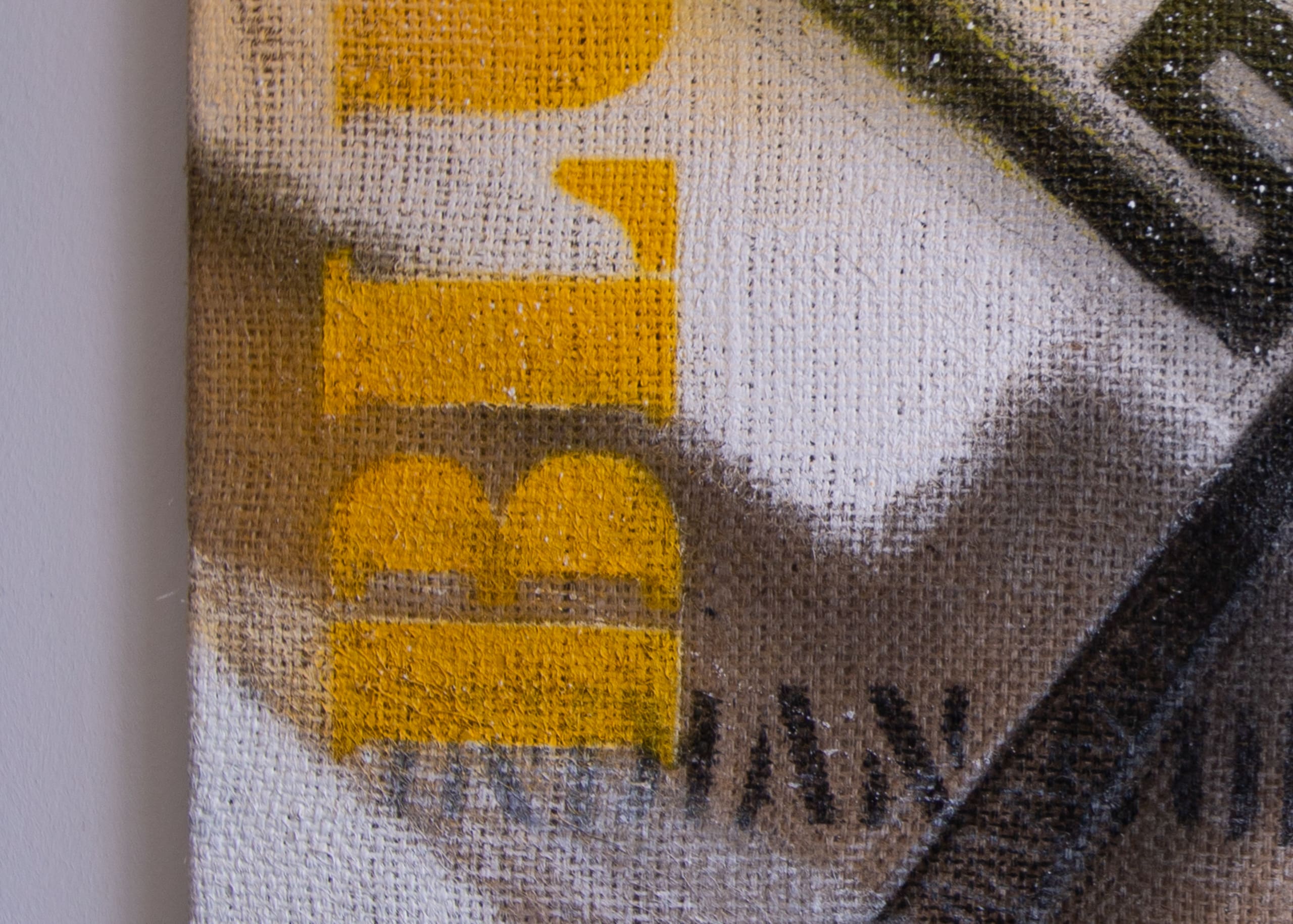 Technik: Sprühlack-Mischtechnik, Format: 3x 60x60cm bespannter Keilrahmen/ Kaffeesäcke, Datum: 2018